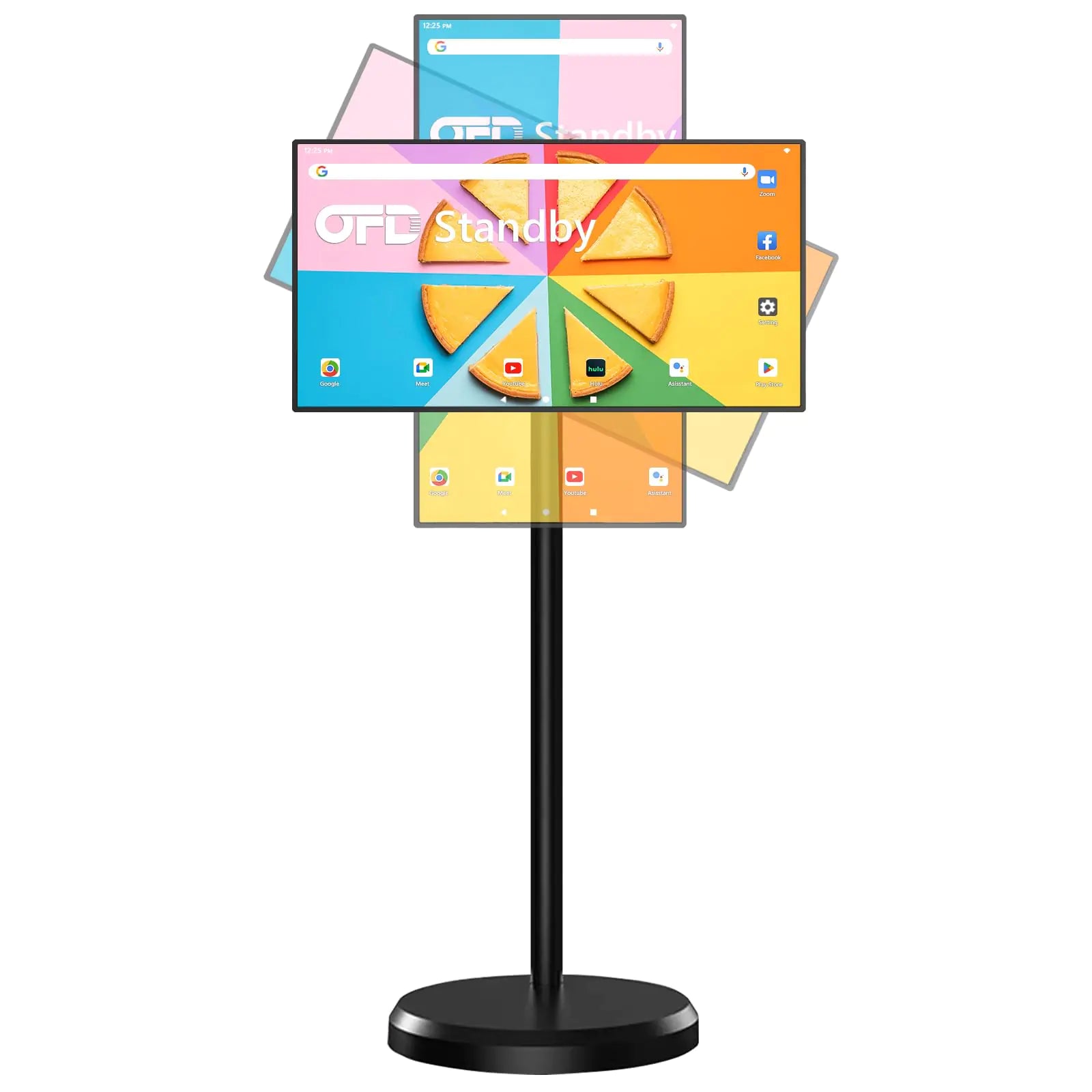 [【Removable Android Tablet Monitor】Tablet monitor with wheels uses a 21.5-inch IPS screen with 100% sRGB FHD1080P 60HZ and built-in speakers*2 (3W+3W). It is a mobile smart screen suitable for learning and teaching leisure and entertainment and work assistants. You can use it to learn the yoga moves you want learn cooking watch movies watch Tiktok videos and wirelessly cast screens. The silent wheels on the base make it convenient for you to move it around the house at any time or even move it outdoors. 【Android system supports Google Store】The rotatable screen is based on Android 13 system and is equipped with 4GB RAM and 64GB storage space. This device has been fully certified by Google and allows you to access the Google Play Store allowing you to easily download and run any application. It can interact well with Phone Tablet or other devices to achieve your work needs and entertainment moments. 【Support flexible adjustment of screen angle】Touch screen of the black body can be flexibly adjusted to your comfortable viewing angle. It can rotate 90° left and right look up 25° and look down 15°. The adjustable screen can be adjusted to horizontal and vertical modes to provide you with the best viewing experience. 【Long-lasting battery life and wireless projection support】The portable TV is assembled with a smart touch screen a standing bar and a base with a battery. The battery capacity is 12V 6000mAh. When fully charged it can last for 4-6 hours without plugging in. The device supports Wifi5.0 transmits content information under Bluetooth 5.0 and supports wireless projection. Screen projection protocol: supports Android iPhone Windows and Mac computers. 【Only supports Type-C interface】The smart TV display only has a Type-C interface and supports OTG. In addition to wireless projection the device can also be connected to the Type-C interface of the display through a transmission line and the screen content can be transmitted in real time. Users can easily share their favorite content with close individuals. 【Product List】21.5inch Smart screen x 1 standing bar x 1 mobile base x 1 power adapter x 1 user manual x 1. Please note that this device does not come with a camera. If you have any questions about this portable TV after purchase please feel free to consult us and we have professional technicians to answer your questions.]